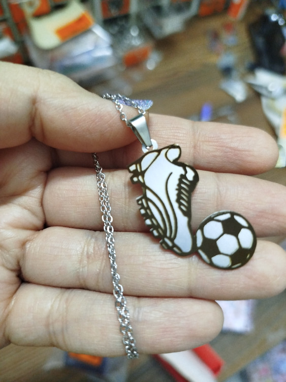گردنبند کفش و توپ فوتبال بسیار زیبا و بادوام می باشد.مناس برای استفاده روزمره نوجوانان خانم ها و اقایان علاقمه مندبه فوتبال می باشد. جنس کار استیل رنگ ثابت می باشد.