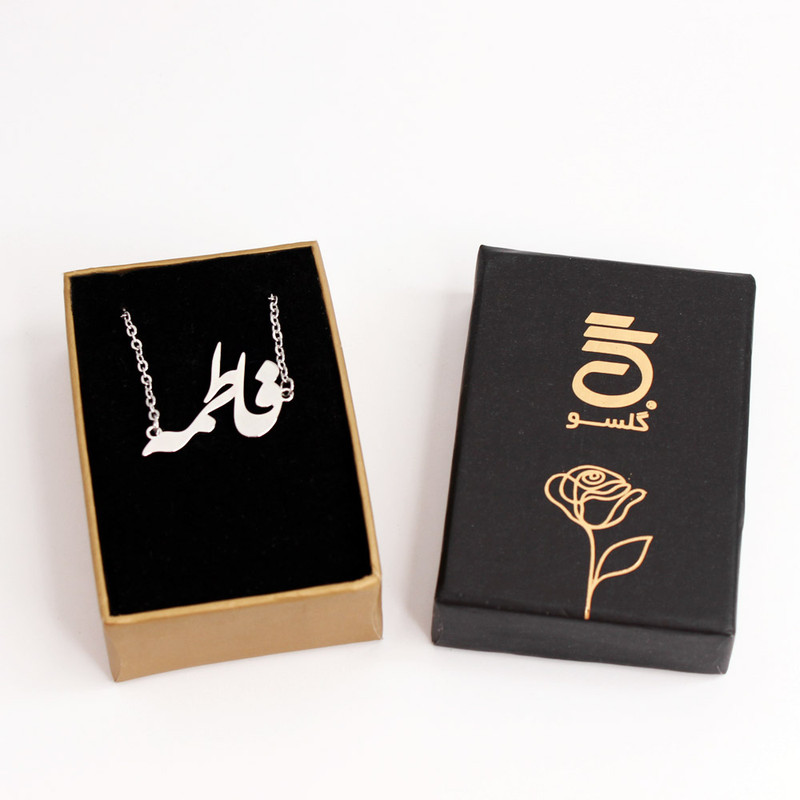 گردنبند گلسو مدل اسم فاطمه استیل به صورت پلاک و زنجیر همراه با جعبه کادویی گلسو که عکس آن در گالری این محصول موجود است، ارسال می شود. پلاک و زنجیر هر دو از جنس استیل براق و رنگ ثابت می باشند. ابعاد پلاک این گردنبند را می توانید در بخش مشخصات مشاهده کنید. لازم به ذکر است که این محصول در کارگاه گروه هنری گلسو تولید شده و یک محصول ایرانی می باشد.