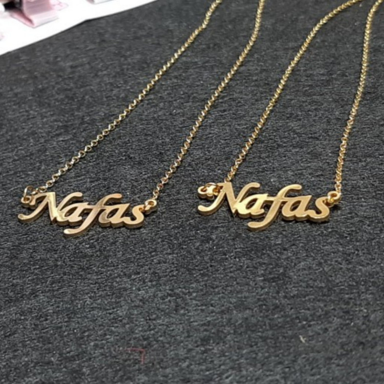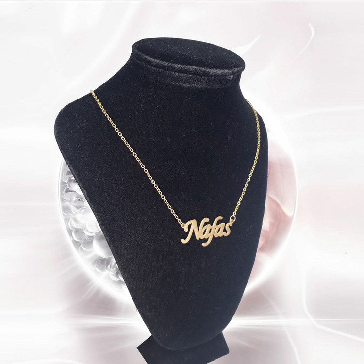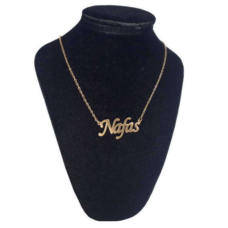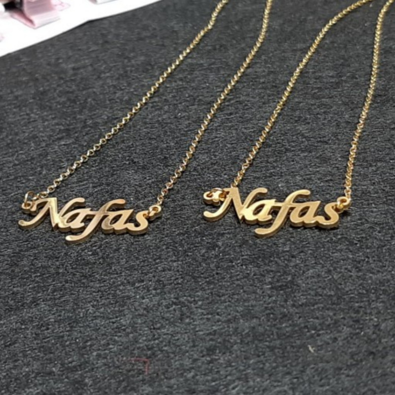 گردنبند اسم نفس، جنس آن استیل هست، زنجیر 45 ساننیمتر دارد، رنگ نقره ای هست