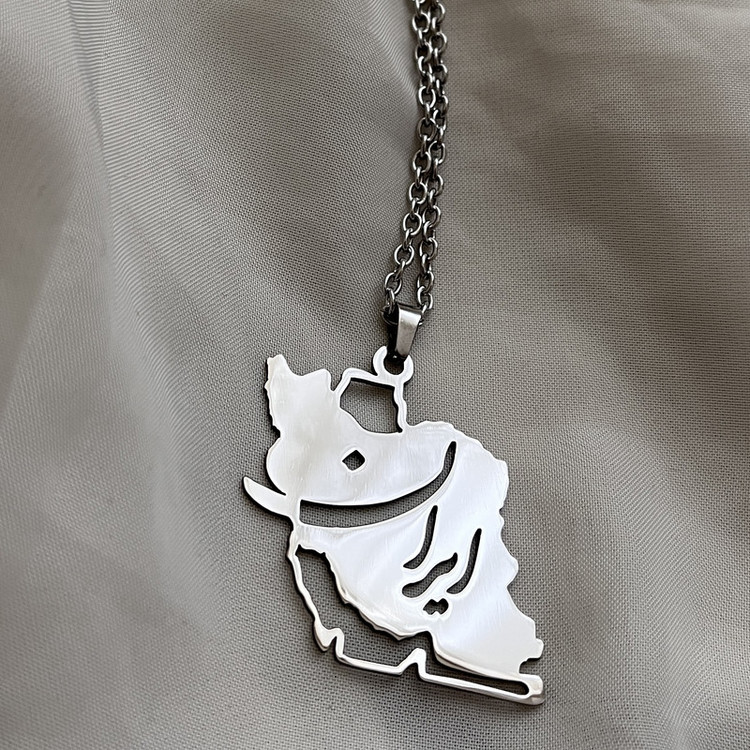 گردنبند مدل ایران نقره‌ای رنگ ثابت