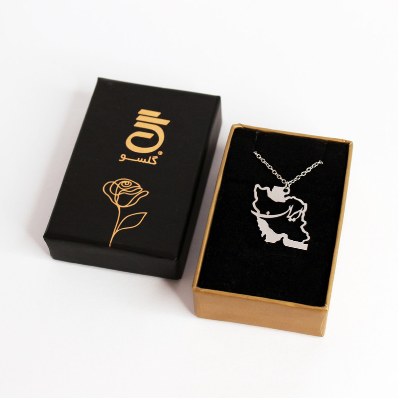 گردنبند گلسو مدل ایران و دریاها طرح خطی با نوشته ایران نستعلیق استیل به صورت پلاک و زنجیر همراه با جعبه کادویی گلسو که عکس آن در گالری این محصول موجود است، ارسال می شود. پلاک و زنجیر هر دو از جنس استیل براق و رنگ ثابت می باشند. ابعاد پلاک این گردنبند را می توانید در بخش مشخصات مشاهده کنید. لازم به ذکر است که این محصول در کارگاه گروه هنری گلسو تولید شده و یک محصول ایرانی است.