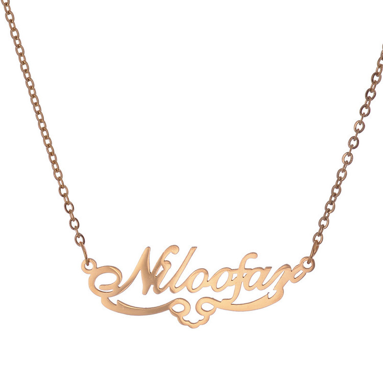 گردنبند طرح اسم نیلوفر نقره ای رنگ ثابت