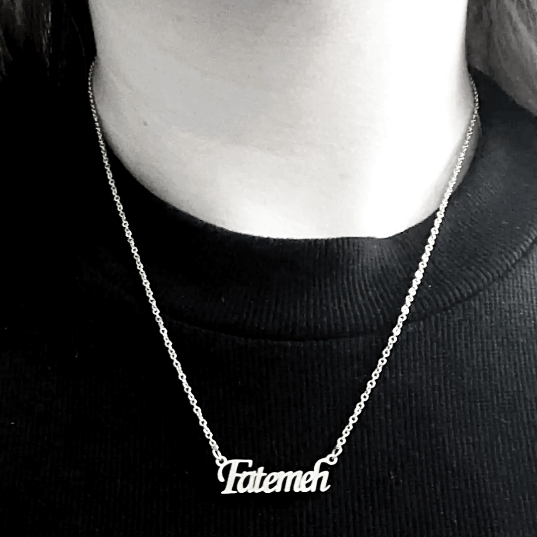 گردنبند اسم فاطمه نقره ای رنگ ثابت