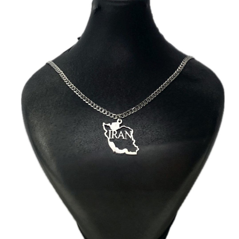 گردنبند مدل استیل طرح نقشه ایران نقره ای رنگ ثابت